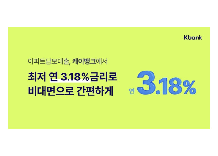 11일 기준 연3.41~4.38%케이뱅크가 최저 연 3%대 변동금리형 주택담보대출을 출시했다.비슷한 상품을 KB국민·신한·하나·우리·NH농협 등 5대 은행에서는 4.5%는 내야 빌릴 수 있지만 케이뱅크에서는 금리 상단이 4.38%다.11일 케이뱅크는 아파트담보대출 신규..